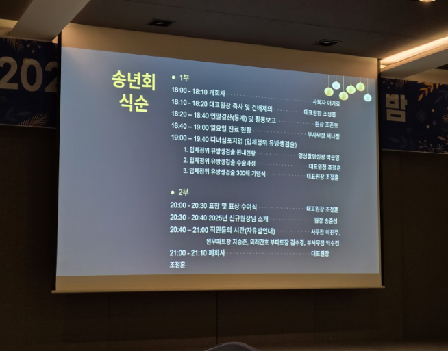한 해 동안의 노고를 서로 격려하고 감사의 마음을 나누기 위해 2025년 12월 20일 송년회를 마련했습니다.